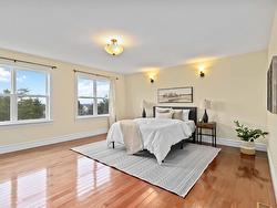 Welcome to 167 Ravines Drive—an elegant, expansive 5-bedroom, 4-bathroom home in one of Bedford’s most sought-after neighbourhoods. Built in 2008 and offering nearly 3,500 sq. ft. of finished living space, this three-level home blends timeless finishes with thoughtful upgrades, including fresh paint throughout, a ducted heat pump, and a 2020 hot water tank. Step inside to a warm and inviting main floor featuring hardwood flooring, a spacious open-concept kitchen and living room, and a cozy propane fireplace. A formal dining room and a bright sitting room create the perfect layout for both family living and entertaining. Hardwood stairs lead to the upper level, where you’ll find four generous bedrooms and two full bathrooms, including a well-appointed primary suite with a large walk-in closet and an ensuite bathroom featuring a soaker tub. To top it off, you have an upper level laundry room on this second level so no need to walk downstairs to do your laundry! With plenty of space for a growing family, this level is designed for comfort and functionality. The walkout basement adds even more living space, featuring a media room, a spacious fifth bedroom, and a full bathroom—ideal for guests, teens, or extended family. Outside, the property backs onto a peaceful green belt, offering added privacy and a natural backdrop. The attractive brick exterior and the attached double garage complete the home’s strong curb appeal. Located on a quiet, established street in The Ravines—a community known for its beautiful homes, excellent schools, and family-friendly atmosphere—this is a rare opportunity to own a well-maintained, move-in-ready home in a premium Bedford location.