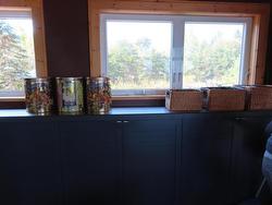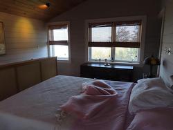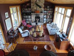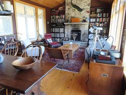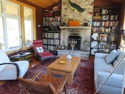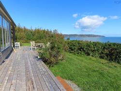 Architecturally designed (architect James Ireland, Toronto) - two bedroom two bathroom cliff side home with water frontage on beautiful St. George's Bay and views across the bay to Cape Breton and Cape George Lighthouse...spectacular sunrises and moon rises!! the main level has a combined living room with massive stone woodburning fireplace, dining area, galley kitchen and windows all around to capture the views. Custom built storage cabinets along the hallway which leads to a bath with shower, guest bedroom and hallway. The upper level is a primary bedroom, full bathroom, walk-in closet again with captivating views. A full basement houses laundry area, utility and a full storage area. This home is move-in ready. Decking on three sides. A detached building (bunkie) with sleeping quarters for the privacy of guests - a lush rose bush hedge with long numerous bloom times with amazing scents. This property affords privacy with neighbors in close proximity - PLUS - just minutes to a pleasure craft marina -