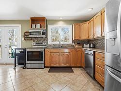 Welcome to 100 Tamarack Drive, Fall River. This 3-bedroom, 2-bath split entry home is set on an acre-plus lot on a quiet cul-de-sac in a family-friendly neighbourhood. The main level of the home features a bright, open eat-in kitchen with ample cupboard space and new appliances, along with a spacious living room with hardwood flooring and a wood-burning fireplace. Patio doors lead to a large deck overlooking the nicely treed, level backyard—perfect for entertaining or keeping an eye on pets and kids. Down the hall are three bedrooms and a full bath. The lower level includes an open rec room with bar, a 3-piece bath with laundry, and a large additional room that could serve as a guest bedroom, hobby space, or home office. Hobbyists will appreciate the large attached double garage, and the multi-purpose space in the loft above offers great flexibility for a home office, additional storage, or extra living area. Updates include new roof shingles in 2023 and newer vinyl windows and doors. Enjoy the value and community of country living, just a short drive to all Fall River amenities. Book your viewing today!