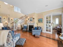 Discover the ultimate in coastal luxury at 73 Kestrel Court, a custom-built estate just minutes from Halifax. Nestled at the end of a quiet cul-de-sac, this 6266 sq ft French Provincial-style home sits on over 64,000 sq ft of professionally landscaped oceanfront property, offering uninterrupted views of the Atlantic Ocean. From the moment you step inside, the home impresses with its timeless design, high-end finishes, and an abundance of natural light streaming through expansive windows. Nearly every room captures the spectacular ocean views, creating a serene and elegant living experience. The main living room features a propane fireplace and opens onto a spacious balcony—perfect for relaxing or entertaining against a backdrop of open water. The space flows effortlessly into the formal dining area and the gourmet kitchen, where handcrafted cherry cabinetry, double granite-topped islands make this a dream for any chef. A large walk-in pantry offers additional prep area, appliances, and even its own private balcony. Above the dbl garage, you'll find a large loft with a full bathroom, ideal as a guest suite, home office, or media room. Upstairs, the grand staircase leads to a beautifully appointed family room with a coffered ceiling, and then to the primary suite—a true retreat featuring floor-to-ceiling windows, a luxurious spa-like ensuite with a walk-in shower, soaker tub, double vanity, fireplace, generous walk-in closet, and a private staircase to the main floor. This level also includes a second bedroom with full ensuite. The lower level continues the theme of luxury and space, with a large rec room that opens to the outdoors, flanked by an additional bedroom & a flex room, each featuring walk-outs, ensuite baths, and walk-in closets. Panoramic ocean views, exceptional craftsmanship, and thoughtful design throughout.