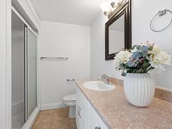 Bright and modern 2-bedroom, 2-bath condo offering a perfect blend of comfort and style. The spacious primary suite features a walk-in closet, double windows, and a private ensuite with a 4-foot corner shower and dual vanity. The second bedroom and full bath provide flexibility for guests, family, or a home office. Sunlight fills the open-concept living area, leading to an expansive balcony ideal for relaxing or entertaining. The chef-inspired kitchen boasts modern finishes and ample cabinetry, while the convenient in-unit laundry and storage room add everyday practicality. Located in a desirable community close to all amenities, this inviting home is move-in ready—book your showing today!