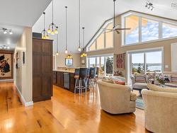 Welcome to 12 Partridge Lane, where timeless elegance meets natural beauty. From the moment you arrive, you willl know you are somewhere truly special. A fully paved driveway winds gracefully beneath a canopy of trees, leading to your private retreat. Nestled on over 5 acres across two lots with more than 460 feet of ocean frontage, this home offers privacy, sophistication, and sweeping views of the ocean and historic McNutts Island. Inside, soaring vaulted ceilings and expansive windows frame breathtaking views. The open-concept living, kitchen, and dining area is both stylish and functional. A chef's dream, the kitchen features a large island, propane stove, stainless steel appliances, and walk-in pantry. The adjoining living room, complete with propane fireplace, creates a warm and inviting gathering space. The primary suite is a true sanctuary with floor-to-ceiling windows, a walk-in closet, and a luxurious ensuite with separate water closet. Two additional bedrooms and a well-appointed second bath ensure comfort for family or guests, while a dedicated laundry room adds convenience. A versatile den serves as both a TV lounge and a fully equipped gym with professional rubber flooring, while the triple-car garage with its extra-high door offers ideal storage for your boat or camper. High-quality finishes include solid maple hardwood doors, in-floor heating, great room air conditioning, and a propane automatic backup generator. Outdoors, the grounds are beautifully landscaped with Dogwood, Japanese maple, and vibrant perennials, plus a covered front patio for enjoying the serene setting. With R-2000 construction and timeless architecture, 12 Partridge Lane offers more than a home, it offers a lifestyle where elegance, comfort, and natural beauty meet.
