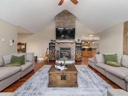This 13 year old home sits on a sprawling 42 acre lot in beautiful Prospect Village, with a water view and 5,646 sq. ft of living space. The very loved raised bungalow is too incredible to pass up for those buyers looking for a dynamic two level living with income and further development potential! 5 generously sized bedrooms include a primary en-suite bath with a walk in closet and 3 more bathrooms. A beautiful new in-law suite with separate walkout entrance offers privacy and independence for extended family, guests or even an airbnb. The open kitchen is adorned with walnut cabinets, granite countertops and walk in pantry. This space seamlessly transitions into the living room, featuring vaulted ceilings, enhancing the sense of space, coupled with the coziness and charm of the custom stone floor to ceiling fireplace. Downstairs is the ultimate media center, a full sized pool table area and a huge custom mess bar. In addition, a very large workshop area will be changed over to a yoga, gym room in November as the home business is moving. The furnace has been replaced with a brand new on demand electric boiler and the full array of roof top solar panels ensure that your electricity is merely a fraction of a tiny home's bill. With 2 new heat pumps, an upgraded generator panel and new water softener complete with a reverse osmosis system, all the worry has been taken care of. There is a brand new 2 car garage that is wired and heated with a heat pump. This property represents a compelling opportunity for those seeking a spacious and luxurious home with potential to recoup some of your investment through the suite and a subdivision process. Sellers have an an application for subdivision approval for 4/5 lots. Approval will shared with buyer. Back of property fronts onto Brennans Road.