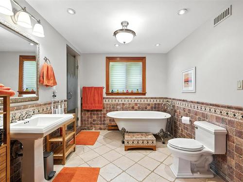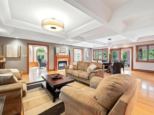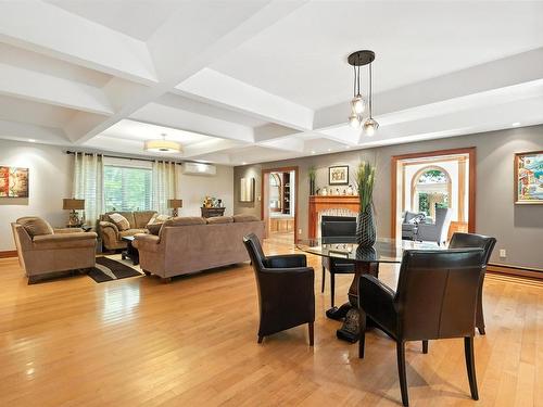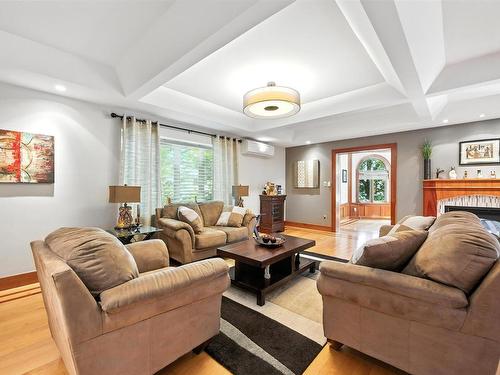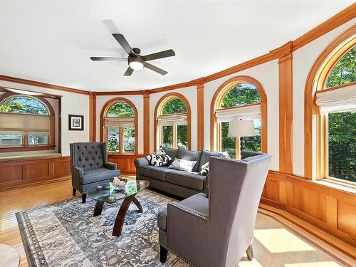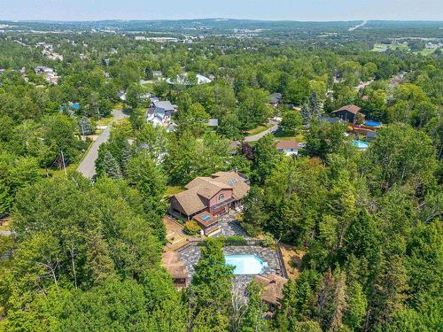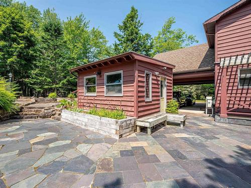 Welcome to a true masterpiece of luxury living, where timeless elegance meets modern sophistication in every carefully curated detail. The grand great room, crowned with a custom coffered ceiling, offers a breathtaking space for entertaining, effortlessly blending formal dining and inviting sitting areas. A striking double-sided marble fireplace enhances both the great room and family room, filling each space with warmth and refinement. The chef’s kitchen is a dream come true, bathed in natural light from abundant windows and enhanced by bespoke cabinetry and a magnificent island that invites both cooking and gathering. Just beyond, the sunroom serves as a four-season sanctuary, offering panoramic views of the landscaped perennial gardens and creating a perfect retreat for morning coffee or quiet reflection. Rich cherry wood doors, trim, and cabinetry, along with elegant wainscoting and birch hardwood floors with intricate inlays, showcase the craftsmanship found throughout. Upstairs, four spacious bedrooms each feature individual air conditioning units for year-round comfort. The primary suite is a private haven with its own balcony overlooking the enchanting grounds. Its spa-inspired ensuite boasts heated tumbled marble floors, a rainforest shower, and a clawfoot soaker tub that exudes luxury. The walkout basement provides even more living space with a versatile rec room and workshop. Outdoors, the grounds are equally impressive, featuring custom Pictou County sandstone walls, Nova Scotia slate walkways, and a spectacular fenced in-ground swimming pool measuring 20x40 with a 12-foot depth. A screened cabana and pool house with three-piece bath elevate outdoor living, offering the perfect setting for summer entertaining. This residence is more than just a home, it is a statement of refined living, blending comfort, beauty, and craftsmanship to deliver an unparalleled lifestyle.