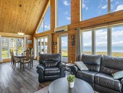 Prepare to fall in love with this absolute Maritime treasure—an exceptional seaside haven nestled on 3 acres along the picturesque shores of St. Mary’s Bay. Thoughtfully positioned to capture breathtaking panoramic views, this property offers easy access to its own water frontage and an ever-changing coastal vista—where occasional sightings of scallop draggers and lobster boats enhance the view, and sunsets are nothing short of breathtaking. The expansive deck wraps around the front and one side of the home, creating the perfect vantage point for morning coffee, evening wine, or simply enjoying the peace and serenity this coastal gem offers. Inside, the home continues to impress. The open-concept layout seamlessly connects the kitchen, dining, and living areas—ideal for both relaxed living and effortless entertaining. A propane fireplace sets a cozy ambiance, while in-floor heating and a ductless heat pump provide year-round comfort. The main level features a spacious bedroom, laundry and storage area, and an updated 3-piece bath with a walk-in shower and new sink and counter top (2025). Upstairs, a dreamy primary suite awaits, complete with an oversized walk-in closet and a stunning ensuite bath featuring a luxurious soaker tub and new sink and counter top(2025). Whether you're ready to slow down and savour each moment, or searching for a show-stopping waterfront retreat, this home delivers. Spacious, stylish, and soothing to the soul—schedule your viewing today before this rare oceanfront opportunity slips away!