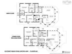 Looking for something totally unique that is on just over an acre lot surrounded by woods providing a private serene waterfront setting with gorgeous sunsets, and is actually two residences in one? Here is a raised bungalow duplex with no entrance stairs to either level making each wheelchair accessible - an interesting and unique arrangement where the home can be used as a single family home, a multi-generational home or a home with a full secondary suite apartment as a duplex providing you with short term or long term residual income. Stoney Beach Road in Whites Lake is just 15-20 minutes to Bayers Lake shopping, 25 minutes to downtown Halifax and 25 minutes to scenic Peggys Cove. Each level has almost 2000 square feet of carpet free living space with: 3 bedrooms that include a spacious primary bedroom with ensuite bath; open concept living dining areas with panoramic windows overlooking the water with wrap around decking; kitchen; laundry; and separate paved parking areas. Numerous updates have been done over the past 7 years that include paved driveway, roof shingles, solar panels, electrical panels, interior staircase, updated ensuite bathrooms, flooring, windows, custom blinds, decking, air exchangers and appliances. Features also include: separate NS Power meters; a detached 24’x29’ heated double garage with a studio that can be used as an art studio, workshop, or gym/yoga studio or even an office; and there’s a shed, a greenhouse and a path to a small wooden dock on the waterfront for launching your canoe/kayak to go to big Whites Lake.