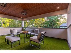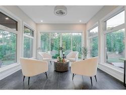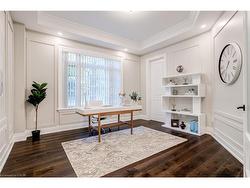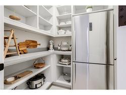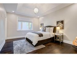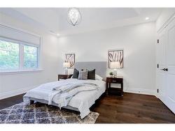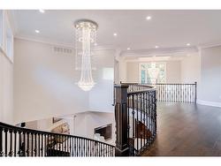 This multi-generational luxury dream home blends timeless design with superior craftsmanship, offering over 8,850 sqft. of finished living space with 7 bedrooms and 8 bathrooms on a 135-ft-wide lot in Ancaster’s prestigious Oakhill neighbourhood. Surrounded by mature trees and estate homes, the property showcases two separate garages, parking for 20+ vehicles, professional landscaping, and a commanding architectural façade. Inside, a 21-ft grand foyer with curved staircase and custom millwork sets an elegant tone, complemented by wide-plank hardwood, porcelain tile, and abundant natural light from oversized windows. The main level offers formal living and dining rooms, a private office, powder room, and one of two primary suites with backyard walk-out. At the heart of the home, a soaring family room with floor-to-ceiling windows connects to a gourmet kitchen featuring top-tier Thermador appliances, a servery, walk-in pantry, and a heated four-season sunroom with in-floor heating. Upstairs are four generous bedrooms, each with its own ensuite and heated floors, plus a convenient laundry room and a spectacular primary retreat with gas fireplace, dressing room, and spa-inspired 6-pc ensuite. A covered terrace with artificial turf extends the living space outdoors. The finished lower level offers incredible versatility for extended family living with a separate entrance, two bedrooms, two bathrooms, recreation room with gas fireplace, kitchenette, and a sound-isolated home theatre room that can be separated from the rest of the basement. The private backyard provides multiple patios under mature trees, with professional renderings available for a future pool, hot tub, and full landscaping. Smart-home features include Control4 automation, security system, 400-amp, dual furnaces & ACs, HRVs, and central vacuum with hide-a-hoses. A rare opportunity to own an Oakhill estate that combines sophistication, space, and modern functionality for today’s luxury lifestyle.