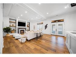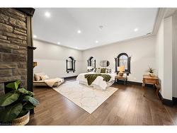 Nestled in scenic Ancaster Village, this French Chateau-inspired residence offers over 7,000 sqft of luxury backing onto the iconic Hamilton Golf Club, with sweeping views of one of Canada’s premier courses. This 3-storey masterpiece features 4 beds, 7 baths, 10.5’ soaring ceilings, custom millwork, and refined European design. The main floor is designed for entertaining, showcasing a gourmet kitchen with high-end appliances, quartz counters, custom cabinetry and a large island. Three sets of double doors open to a covered outdoor dining area. A formal dining room with chandelier, fireplace and wet bar adds elegance, while the family room with built-ins and fireplace connects seamlessly to the landscaped yard. Second level is dedicated to ultimate comfort, 3 spacious bedrooms each with private baths & walk-in closets. Primary suite boasts gorgeous stone fireplace, custom walk-in closet & spa-like ensuite with freestanding tub, rainfall shower, glass shower, and private terrace overlooking the golf course. Third level serves as a secluded refuge with spacious living room, large bedroom, full bath & kitchenette. A walk-out portico terrace offers panoramic views of the golf course. Lower level features 9' ceilings, a recroom, fitness room, family room with another fireplace, full bathroom, heated floors & a kitchenette. A wine cellar completes your chateau experience. The property boasts a cedar-ceiling covered deck, outdoor gas fireplace, mature trees for privacy, 5 fireplaces, 3 dishwashers, Terrazzo concrete driveway & large tandem garage with 4-post car lift for the car enthusiast. Crafted with an ICF foundation and whole-home hydronic in-floor heating across all four levels, the residence delivers year-round comfort, remarkably low operating costs, and a reduced carbon footprint—luxury that’s as smart as it is beautiful. Close to fine dining, shopping, trails, and conservation areas, this property is a rare haven of sophistication, luxury, and timeless elegance.