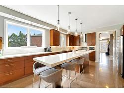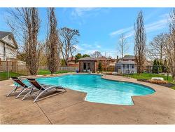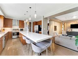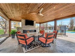 Welcome to 349 Valridge Drive in Ancaster, the home that offers space, beauty and a back yard oasis you’re going to fall in love with. Built in 2009, this very unique home with custom floor plan sits on a spacious irregular shaped lot in the very popular Parkview Heights neighbourhood.Upon entering this home with approx 3300 sqft of total living space, you’ll find an extra spacious foyer that leads you through the unique floorplan that includes ample pot lighting, a gorgeous kitchen with 12’ Island, quartz countertops, stainless appliances with gas stove, and loads of natural light. The adjacent family room with double sided GFP shared with the dining room make this a great space for entertaining and family gatherings. Other main floor features include a beautiful 2pc Powder Room with accent lighting, and Mud Room that leads you to the double car Garage. As you make your way up the carpet free staircase with wainscoting accents, you’ll find a very functional second floor that includes 4 bedrooms and laundry area. The spacious primary bedroom comes with a 5pc ensuite bath, WIC and California Shutters. The other 3 bedrooms also have California Shutters, with 2 of the 3 bedrooms having WIC of their own. The finished basement with GFP allows for additional living space for the kids, or for the entire family to spend time together. The stunning back yard oasis is where you’ll spend your summer days and nights, whether it be swimming and lounging around the inground pool, or entertaining family and friends under the covered patio watching TV in front of the cozy GFP. Other highlights of this stunning home include, updated furnace & A/C (2022), Sump Pump (2025), sprinkler system, cold cellar, TV hookup above outdoor patio fireplace, new pool pump and salt cell (2025).Home is all brick, stone & stucco.