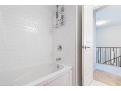 Stunning end-unit freehold townhouse in family friendly Binbrook community. Loaded with upgrades including high end ceramics, wood staircase, pot lights and the list goes on. Spacious main level with kitchen and dinette open into living room space with light drenched patio doors walking out to oversized rear lot. Premium cabinetry with new stainless steel appliances showcase the kitchen. Open ceiling staircase with large side window lead to 3 generously sized bedrooms and luxurious ensuite bathroom. Second full visitor bath is ideal for growing families. No side neighbor to west side gives privacy to massive backyard and side lot, which could potentially facilitate a pool. Loads of potential inside and out on this gorgeous home.