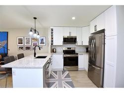 Welcome to Uptown Orchard, an established condo development in the desirable Orchard Community. This pet friendly complex allows furry friends (with restrictions). The patio door from this ground floor condo opens onto a green space, making dog walking a breeze.This lovely, thoughtfully designed & renovated open-concept layout is sure to impress the most discriminating Buyer. Whether you are a first time Buyer, downsizer, right sizer or savvy investor, you will be impressed with the quality upgrades this condo has to Offer. Recently renovated from top to bottom with brand new classic, white kitchen cabinetry, stainless steel fridge, stove, dishwasher, Silestone solid surface counters, engineered hardwood floors, fresh paint, pot lights. The bedroom is spacious enough to hold a king sized bed (rare in this size of condo). You will enjoy the spa inspired bathroom with a tub/shower combo, white vanity, ceramic floors and in-suite laundry.This turnkey property offers a rare opportunity to own a piece of upscale urban living. With close proximity to transportation, schools, shopping and worship, there is nothing to do but move in and enjoy.