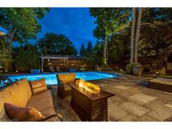 Welcome to this exceptional luxury estate in Shoreacres, steps from the lake - offering over 9,000 sqft of beautifully designed living space.Custom built with impressive curb appeal and meticulous attention to detail. Grand entrance and main staircase welcome you to this thoughtfully designed home that blends relaxed elegance w/timeless design through layered millwork and a purposeful layout. The formal living features coffered ceilings, gas fireplace and double sided aquarium. The grand dining room provides ample space for large family gatherings. A sun soaked kitchen opens into a bright sunroom and walkout to the backyard- ideal for morning coffee or hosting poolside gatherings. Chef’s kitchen features a large island, gas cooktop, double wall ovens, oversized fridge, pantry and a built-in bar area with sink. The utility wing is tucked away w/mudroom, garage access, secondary stairs and additional rear yard access. The south facing primary retreat has lake views, gas fireplace,generous walk-in and a spa ensuite. Four additional well-appointed bedrooms enjoy their own private ensuite. The fifth bedroom also features its own rec room with second laundry and sink - perfect for a dedicated in-law or nanny suite. The nearly 3,100 sqft finished basement includes a bedroom with ensuite, bar, wine cellar, theatre room, gym, and ample space for entertaining.The professionally landscaped rear yard features multiple flagstone seating areas, a full size heated salt water pool with automatic cover, outdoor kitchen/ BBQ station, and covered cabana with gas fireplace, all bundled in a Muskoka-like tranquil setting. Elegant, timeless, and serene—this is a rare opportunity to live steps from the lakein one of Burlington’s most coveted neighbourhoods. Luxury Certified.