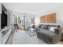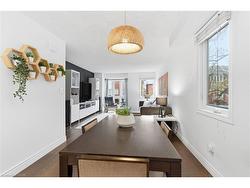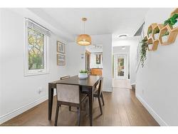 Bright, updated end unit featuring an open-concept main floor with hardwood floors and newer windows. Kitchen offers stainless steel appliances, ample storage, and patio doors to a private patio. Upper level has two bedrooms and a 4-piece bath. Finished lower level includes a family room, 2-piece bath, and large laundry/storage area. Overlooks green space with no neighbors beside for added privacy. Move-in ready!