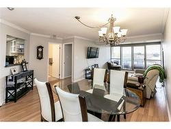 Absolutely Stunning Reno Kitchen Featuring Marble Accent Wall And Backsplash, Quartz Counter, And Porcelain Floor! Plus Crown Moulding, Recessed Lighting, Ceiling Fan, Large Pantry, Painted Cabinets, New Faucet And Pass Through! Fabulous Floor Plan Boasting 1,196 Sq Ft, Two Bedrooms, 2 Bathrooms With Oversized Windows Allowing The Bright Morning Sunshine In!! Spacious Primary Bedroom Complete With 4pc Ensuite And Large Walk In Closet Plus A Walkout To The Sunroom! Open Concept Living Room/Dining Room accented by the crown moulding, laminate floor and walk-out to balcony overlooking mature trres and creek!! Bay windowed second bedroom offers oversized windows, double closet with shelving!! Relax in the cozy sun room with large windows allowing the morning sunshine in, plus a walk-out to a large balcony to enjoy your morning coffee!! Locker and parking space are owned!! Freshley painted!! A must see!!