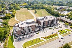 2 bed 2 bath open concept, 1700 sq ft unit located in The Gardens (newest building) a 55+ life lease community near downtown Burlington with wheelchair access and great amenities including workshop, lounge, fitness and party rooms, terrace, underground parking and lockers.Open concept with engineered hardwood throughout, white kitchen with s/s appliances, dedicated laundry room, den, and private balcony overlooking park area. Primary ensuite with roll in shower+grab bars -wheelchair friendly.