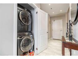 Experience true penthouse luxury at the Haven building in Burlington's coveted Orchard community! This Spectacular 1-bedroom plus den, 2-bathroom suite redefines condo living with 1,209 sq ft of sun-drenched space soaring 10-foot ceilings that must be seen to be appreciated. Originally a two-bedroom plan, this unit has been brilliantly redesigned to create a massive, open-concept living room perfect for entertaining or enjoying the airy, light-filled ambiance. The updated chef's kitchen is the heart of the home, featuring gleaming quartz countertops, a large island, and premium stainless steel appliances. Unwind in your private primary retreat with a large walk-in closet and a spa-like ensuite bath. The versatile den makes an ideal home office or guest space. Enjoy morning coffee on your private balcony and the incredible convenience of a storage locker located on the same floor. The Haven offers an unbeatable lifestyle. Head up to the spectacular rooftop terrace with BBQs, a putting green, and panoramic views of the escarpment. The building also includes a gym, a party room, and an energy-efficient geothermal heating and cooling system for low-cost, year-round comfort.