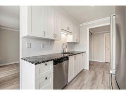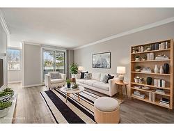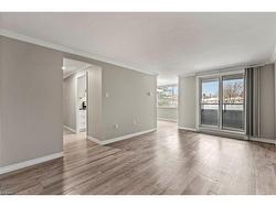 Move-in Ready! This is a term which is often used but seldom delivered. Unit 205-200 Jamieson Pkwy truly delivers! This 973 sq ft, 2-bedroom unit has been completely upgraded! Featuring LVP flooring throughout creating a beautiful, super durable, easy to clean surface on which to display your furnishings. The spacious living room will become the gathering place for conversation or the ideal spot to binge watch your favorite program. When the weather warms, the adjacent covered balcony provides the ideal spot for a morning coffee or evening libation. Here you can enjoy the fresh air and remain protected from intense sun or rain. The bright kitchen has been fully remodeled with additional cabinetry, subway tile backsplash, stainless steel appliances and stone counters. The resident chef can create their culinary classics for family & friends. Two large bedrooms await the new owners; the primary easily accommodates a King size bed while the 2nd bedroom could serve as a guest suite or perhaps a home office. The 4-pc bath has a man-made marble tub surround providing an easy to maintain surface for showers or baths. Off the hallway, laundry and storage are inconspicuously situated behind an attractive barn door providing both convenience & utility. Additional upgrades include new 4-panel doors, new hardware, new casings/trim and even the popcorn ceilings have been replaced with a California textured finish. Last but certainly NOT least, there are TWO (2) parking spaces, a rare commodity in today’s condo market!