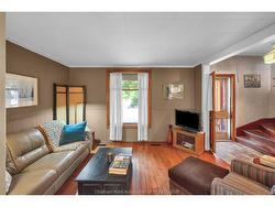 I love it! This charming brick townhouse is the perfect starter home and is solid from top to bottom with a new TPO roof installed in 2022 and hassle-free brick exterior. Front and back porch have been updated, so no worries there. Lots of convenience with its unique property lines that include a rear yard and parking space - the only one with parking. The home backs onto Grant street with access from parking space/backyard to either the basement or kitchen via the back porch. The open concept kitchen/dining room has plenty of room for a large table and island, with linoleum flooring and great circulation with entrance from front foyer and living room with pocket door. Front foyer and living room face Grand Ave and have hardwood flooring. Upstairs are three bedrooms and a good sized bathroom with tub/shower combo and built-in storage and linen closet. The basement is partially above grade with lots of daylight from front and rear windows, with a large rec room that just needs some carpet and a couple touch ups and it is ready for use. The rear half of the basement is storage space with shelving and a laundry/utility room with washer and dryer and walk-out to backyard - great for bikes and larger items. Reduce your exposure to eavestroughs, fences, crawlspaces, shingle roofs, siding and all the other problems that come with a wood framed starter home - Brick townhouses have been the logical choice in major cities for over a century. Very low taxes are the added bonus at $155per month for 2025. Look it over but don't overlook it!