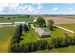 29-Acre Farm with Spacious Bungalow & Outbuildings. Situated on 29 acres of A1-zoned land, this well-built 3,171 sq. ft. bungalow offers generous living space and a functional rural setting close to the town of Chatham. The home features 3 bedrooms and 2.5 bathrooms, along with an attached double garage. The main floor offers a large eat-in kitchen with ample wood cabinetry, a centre island, and plenty of space for family dining. Separate family and living rooms provide flexible living areas, each highlighted by a wood-burning fireplace. The layout is well suited for both everyday living and entertaining. A full basement extends the living space and offers excellent future potential, with rough-in plumbing already in place for a full bathroom, as well as rough-in for an additional fireplace. The home is serviced by a geothermal heating and cooling system with electric backup, offering efficient and reliable comfort. High-speed internet is available. The property includes a large timber-frame barn, a metal-clad driveshed, and two small vacant hog barns. Additional farm features include four grain storage bins, including a 6,000-bushel dryer bin. An excellent opportunity for agricultural use, hobby farming, or those seeking a spacious rural residence with extensive infrastructure.