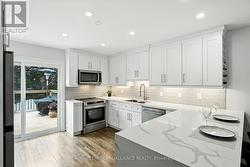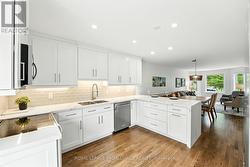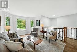 Designed with comfort, elegance, and functionality in mind, this property offers exceptional Designed with comfort, elegance, and functionality in mind, this property offers exceptional Home Depot, and Terry Fox School, and just minutes from downtown. Scenic walking trails, parks along the creek, and the YMCA are all within walking distance. Inside, expansive custom windows allow for plenty of natural light throughout, while elegant hardwood flooring adds warmth. The gourmet kitchen features a peninsula island and abundant cabinetry, designed for entertaining and seamlessly connected to the open-concept dining and living areas. The fully finished basement includes a natural gas fireplace and a walkout to the backyard deck. The spacious deck off the kitchen functions as an extra summer room, perfect for relaxing or entertaining. The exterior offers an attached 1 12-car garage with exterior opener, driveway parking for four vehicles, and a lovely, green backyard-ideal for enjoying the outdoors while still being minutes from town and Hwy 401. Recent upgrades make this home truly move-in ready. Highlights include a custom kitchen with quartz countertops and waterfall peninsula (2023), renovated bathrooms, refinished hardwood flooring, new stairs and railings, LVP flooring in the basement, new appliances, expanded front patio, new windows, doors, patio door, awning fabric, garage door, water softener, new decks, and a custom closet organizer in the primary suite. Additional improvements include ceramic tile at the front entrance, extra attic insulation, furnace, and central air. (id:7525)