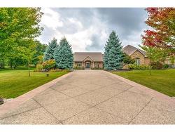 Welcome to the epitome of refined, one floor living in one of the region’s most prestigious estate neighbourhoods — just minutes from the natural beauty of Spencer Gorge. From the moment you step into the grand foyer with its walk-in closet, the home reveals a level of scale and sophistication that is simply rare. Crafted for exceptional main-floor living, the principal rooms flow effortlessly: an expansive living room, elegant coffered dining room, sunlit four-season room with walk-out to the patio, and a warm, inviting family room anchored by a gas fireplace. The oversized kitchen offers commanding views of the expansive grounds and the space to create at any level of culinary ambition. The main-floor primary suite feels like a private luxury retreat, featuring his-and-her walk-in closets and two spa-caliber ensuites with heated floors. A second main-floor bedroom with its own ensuite provides perfect flexibility for children, guests, or elegant multi-generational living. The upper level offers two generous bedrooms, a bonus room, a bright four-piece bath with solar tube lighting, and a walk-in attic for storage. A commercial-grade washer/dryer adds practical convenience. Car enthusiasts will appreciate the three-car garage with exposed aggregate driveway, heated workshop, and wheelchair lift for added accessibility. Outdoors, 1.4 acres of landscaped privacy create a serene backdrop for your outdoor endeavours. The lower level delivers over 3,000 square feet ready for your theatre, fitness studio, or wine cellar (or all of the above). Geothermal heating/cooling, dual water heaters, reverse osmosis, and 400-amp service ensure this home is as future-ready as it is luxurious. Don’t be TOO LATE*! *REG TM. RSA.