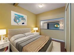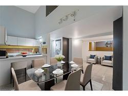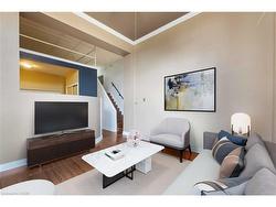 Urban Style Meets Small-Town Charm in Downtown DundasWelcome to The Mainhattan, one of Dundas’ most sought-after condominium residences, perfectly positioned in the heart of downtown. This two-level, 1,182 sq. ft. home (as per MPAC) combines modern design with historic charm, offering a lifestyle that’s as vibrant as it is convenient.Step inside and you’ll immediately appreciate the open, airy feel—thanks to well-placed structural beams that maximize flow and light, setting this unit apart from similar layouts in the building. The soaring ceilings and sun-filled family room create a dramatic yet welcoming space, while the main floor offers flexibility with a bedroom or den, a stylish two-piece bath, and an open-concept kitchen overlooking an oversized dining area, perfect for both hosting and everyday living.Upstairs, the loft-style primary suite is a true retreat, complete with a newly renovated three-piece bathroom featuring a sleek standing shower. Thoughtful details continue throughout, with private parking, a large storage locker, and bike racks all included. Convenient elevator access ensures ease of living.Beyond your door, Dundas unfolds at your feet. Wander the charming historic streets, sip coffee at local cafés, explore boutique shops, or indulge in the town’s farm-to-table dining scene. Outdoor enthusiasts will love the proximity to the Dundas Valley Conservation Area, with its waterfalls, trails, and breathtaking scenery. McMaster University, Dundas Driving Park, and popular cycling routes are just minutes away.As a resident of The Mainhattan, you’ll also enjoy exclusive access to the rooftop patio, ideal for relaxing or taking in panoramic views of this picturesque town.Don’t miss this opportunity to call downtown Dundas home. Book your private showing today.