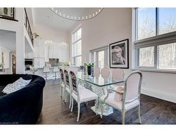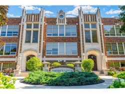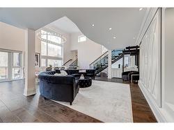 Stunning luxury at the District Lofts! Circa 1929 this boutique building was completely rebuilt in 2013 offering only 44 unique units. Unit 215 is one of the largest two units offering a rare opportunity for the discerning buyer. An over-sized double-car garage and a private entrance make it feel like living in a home without the exterior maintenance. Enjoy the grandeur of this loft style 2-storey condo. A spectacular open living space filled with natural light offers a 17-ft ceiling highlighted by a dramatic Restoration Hardware chandelier and breathtaking views of the Dundas Peak. The stunning gourmet kitchen has extended height cabinetry, high-end appliances, quartz counters and a large island with seating for six. This unit offers two spacious bedrooms and two spa-like bathrooms with upgraded fixtures. There are two private balconies, full-sized laundry, plenty of custom closet storage and fantastic upgrades: trim & millwork, Swarovski crystal handles and motorized blinds. The building offers state-of-the-art in-floor radiant heating and this unit has a brand-new a/c system. Amenities at the Lofts include a fitness studio, large locker exclusive to the unit, and a roof top patio for entertaining or relaxing (enjoy the views and tranquil sounds of the waterfall). Located at the foot of the Dundas Peak just steps to the Bruce Trail, Webster’s Falls, the Dundas Valley Golf and Curling Club and the historic Dundas downtown core with a vibrant mix of shops and restaurants.