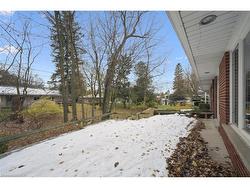 Spacious All-Brick Bungalow in the Heart of Elmira. Set on a quiet, tree-lined street in Elmira’s welcoming community, this beautifully maintained all-brick bungalow offers the perfect mix of charm, space, and opportunity. Situated on a generous .39-acre lot with 138 feet of frontage, this custom-built home has been lovingly cared for and is available for the very first time.Offering nearly 2,500 square feet on one level, this bright and open residence features 4 bedrooms, including a 3-piece ensuite, making it an ideal fit for a growing family or anyone seeking single-floor living.A large, inviting foyer welcomes you into the mid-century inspired layout, where the sunken living room impresses with oversized windows and a cozy wood-burning fireplace—a perfect gathering spot. The adjoining formal dining room adds an elegant touch for entertaining.At the heart of the home, the spacious family room that offers a 2nd fireplace and opens directly to the deck and private backyard, surrounded by mature trees for a serene, forest-like feel. The kitchen is functional as-is or ready for your personal updates and design vision.Additional features include a main-floor mudroom with laundry, a bright sunroom addition, and a massive unfinished basement with walk-up access to the garage—ideal for future development, an in-law suite, or extra living space. There’s no shortage of storage.Located in a sought-after neighbourhood, you’ll enjoy close proximity to schools, the community centre, Kate's Place Park, local shops, and scenic trails—the best of small-town living just minutes from the city.