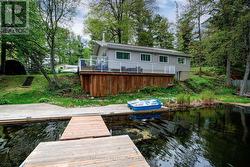 Waterfront home or cottage on beautiful Buck Lake! The property is located in a quiet bay that faces a large open part of the lake. The home has been beautifully upgraded with a steel roof, large 2-tiered deck, new docks plus a kitchen which sits on a concrete block foundation with exterior access to the crawl space for storage and utility. The floor plan consists of an open concept design with 3 bedrooms, a full 4-pc bathroom, large kitchen with attached dining area plus a cozy living room that overlooks the large deck and lake. The house is serviced with a lake water system with a heated waterline and UV system as well as a full septic system. A forced air propane furnace along with an air-tight wood-stove provide ample heat for the home. A storage shed/bunkie sits behind the house and there are two dock areas for your boats or water toys. Access to the water is easy with a few steps down to the water's edge. Buck Lake is a deep, Canadian Shield lake with beautiful rock formations, many islands, bays and towering majestic pine trees along the shoreline. The lake is home to bass, pike, lake trout as well as many other types of wildlife. Fantastic location on a gorgeous lake and easy year-round access just north of Kingston. (id:7525)