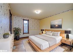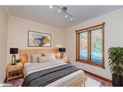 SPACIOUS BUNGALOW SET ON 7.81 ACRES WITH AN ATTACHED GARAGE, HEATED DETACHED SHOP WITH LIVING/OFFICE SPACE & MINUTES TO GEORGIAN BAY! Discover the kind of property buyers dream about but rarely find: 7.81 acres of privacy and natural beauty just minutes from Georgian Bay. Towering trees and rugged Canadian Shield rock frame beautifully landscaped grounds, with armourstone accents, flower beds, and an interlock walkway with steps leading to the front door. A triple-wide driveway provides parking for up to 15 vehicles, complemented by an attached double-car garage and an impressive 30 x 40 ft detached heated shop/garage featuring a finished office or living area and a 14 ft door, offering endless possibilities for hobbyists, contractors, or anyone in need of additional space. This bungalow presents over 2,300 sq ft on the main level with spacious, light-filled living areas, including a great room with a 15 ft beamed cathedral ceiling, a fireplace, and an adjoining dining area, plus a separate living room with crown moulding. The well-appointed kitchen showcases a centre island, pantry, a mix of white and warm wood cabinetry, tile flooring, and a second fireplace, while the vaulted sunroom with large windows and a walkout to the expansive back deck provides the perfect place to enjoy the view. Four generously sized bedrooms include a primary retreat with a 4-piece ensuite featuring a relaxing jetted tub and a glass-walled shower, while another bedroom also offers its own 3-piece ensuite. Main floor laundry adds everyday convenience with a handy sink. Practical features include forced-air propane heating in both the home and the shop/garage, a heat pump in the home for efficient heating and cooling, a drilled well, and 200-amp service. All of this is just minutes from beaches, marinas, the public school, library, LCBO, church, parks, and everyday essentials in Honey Harbour.
