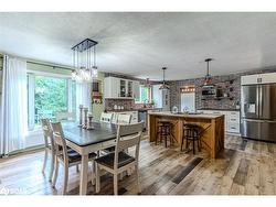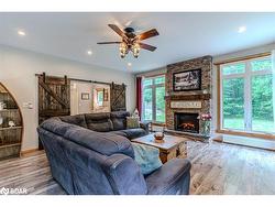 FULLY REMODELLED MUSKOKA RETREAT ON 1.76 PRIVATE FORESTED ACRES WITH SOARING CATHEDRAL CEILINGS, A CUSTOM MUSKOKA SUNROOM, & A 30 X 30 FT SHOP WITH DOUBLE BAY DOORS! Tucked away on 1.76 acres of private, forested land, this extraordinary Muskoka retreat combines natural beauty with stunning upgrades and year-round comfort. Located just down the road from McLean Bay and Sopher’s Landing Marina, and only 10 minutes to downtown Gravenhurst, you are surrounded by lakes, trails, golf, and natural splendour, yet close to every convenience. Designed for outdoor enjoyment, the home boasts a wrap-around deck, a luxurious newer hot tub with a pergola, a charming 3-season bunky for guests or creative use, and a newly built 30x30 ft shop with double bay doors, ideal for car enthusiasts, hobbyists, or seasonal storage. An oversized driveway provides ample space for vehicles, RVs, boats, and other recreational toys. Inside, the striking open-concept design flows seamlessly through the kitchen, dining and living areas beneath soaring cathedral ceilings, while oversized windows frame serene forest views and flood the home with natural light. The inviting living room features a cozy stone-detailed fireplace, rustic exposed beams, and sliding barn doors leading to a primary suite with a walk-in closet and a spa-like 3-piece ensuite with a deep soaker tub. A custom Muskoka sunroom extends from the primary suite for quiet mornings or evening relaxation. Two additional bedrooms and a 4-piece bath complete the main level, while the walkout basement with a dry bar and electric fireplace provides versatile in-law suite potential or a stylish entertainment space. Completely remodelled with a thoughtfully designed addition, this home is finished with artisanal details, including a hand-milled white ash staircase. A true Muskoka sanctuary, this property offers the privacy, craftsmanship, and lifestyle you’ve been dreaming of - ready to be enjoyed in every season!