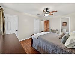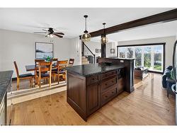 OUTSTANDING LOCATION MINUTES TO BEAMER FALLS – This beautifully maintained 4-level side split sits on a stunning 0.49 acre lot surrounded by an orchard in front, open field to the side, and mature forest behind. Enjoy walking distance to Beamer Conservation Area and just a 20-minute walk to downtown Grimsby. Step inside to a bright, inviting main-floor flex space featuring a cozy gas fireplace and serene backyard views—perfect for a den or home office. Upstairs, the open-concept living and dining area offers Maple hardwood flooring and a charming bay window overlooking the orchard. The updated kitchen includes a large island with leathered granite counters, custom cabinetry, stainless steel appliances, and patio doors leading to an oversized deck ideal for entertaining. The upper level features original hardwood floors, a spacious primary bedroom with ensuite privilege to the 4-piece bath, plus two additional bedrooms—all offering beautiful views. The lower level is warm and welcoming with two large windows, a comfortable rec room, and a combined laundry/utility room. Outside, enjoy exceptional outdoor features including a greenhouse for gardeners, a children’s playhouse, and a 15 x 25 ft workshop. Additional highlights include an attached single-car garage, parking for multiple vehicles, a large vegetable garden, and mature landscaping. This is a truly special property in one of Grimsby’s most picturesque settings close to Bruce Trail and QEW.