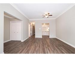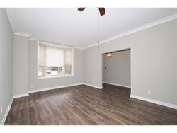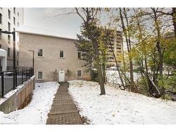 Establish your roots in this spacious 2-bedroom, 2-bathroom condominium located in the historic Phoenix Mill — a beautifully restored limestone building dating back to circa 1870. With only six other units in the building, this unique property offers both privacy and the ease of condominium living in a truly one-of-a-kind heritage setting.This bright main-floor suite features its own private entrance, approximately 1100 square feet of living space, 9-foot ceilings with elegant crown molding, large deep-silled windows, and beautiful hardwood flooring throughout. The thoughtful layout includes a generous primary bedroom with double closets and a cheater door to the 4-piece ensuite, which offers a jetted tub and separate shower. The second bedroom is also spacious, with ample natural light and a double closet. A 2-piece guest bath and convenient in-suite laundry complete the floor plan, providing comfort and functionality.Nestled beside Howitt Creek, the Phoenix Mill offers a serene park-like setting surrounded by mature trees and benches, creating a peaceful outdoor retreat just steps from your door. Owners of this building also have access to the amenities at 358 Waterloo Avenue, which include a small fitness centre, party room, and outdoor BBQ and picnic area — perfect for enjoying gatherings with friends and family.This desirable location is directly across from the Speed River and the Royal Recreation Trail System, providing endless opportunities for walking, cycling, and connecting with nature. It’s also within walking distance to downtown Guelph, the River Run Centre, public transit, restaurants, shops, and offers quick highway access for commuters. A rare opportunity to own a piece of Guelph’s history in a heritage building that blends timeless architecture with the conveniences of modern living.