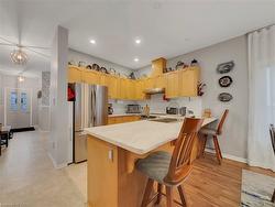 Charming Home with Great Curb Appeal! Features an attached garage and a bright main floor with a spacious primary bedroom and 4-pc bath. Versatile second room ideal as a bedroom or home office. The open-concept kitchen with peninsula flows into the dining and living areas, with a walkout to a deck — perfect for relaxing or entertaining. Includes stainless steel appliances and main floor laundry. The finished basement offers a large rec room with sliding doors to the backyard, a 3-pc bath, and an additional bedroom. A wonderful starter home in a great location!