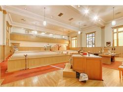 First Pilgrim United Church is a well maintained Beaux Arts institutional property prominently located in Hamilton’s downtown core. Constructed in 1912, the building showcases an impressive architectural presence with its symmetrical facade, six full height Corinthian columns, and classic stone detailing. Offering nearly 20,000 sq ft of usable space across the main level mezzanine and finished basement, the property provides a highly functional and versatile layout.The bright and spacious sanctuary was substantially updated as part of extensive building wide renovations completed in 1984. It features beautiful woodwork, stained glass elements, an organ loft, and an upper balcony with additional seating and an integrated audio visual booth overlooking the main hall. The building includes a full gymnasium and hall, a commercial style kitchen, multiple offices, reception areas, meeting rooms, and a functioning elevator servicing the main and lower level. Most of the current expenses are covered by a portion of the lower level and various other rooms currently leased, generating approximately $6,900 in monthly income.Positioned along a major downtown corridor, the property offers excellent visibility and easy access to public transportation. With its generous square footage, strong architectural character, and well maintained condition, this landmark building is suited for continued institutional use or a wide range of future redevelopment possibilities.