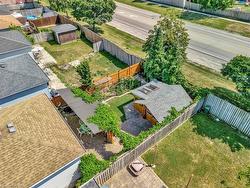 Pride of ownership shines in this beautifully maintained 4-level backsplit, ideally located R near The Linc, schools, shopping, and all major amenities. A private double-wide patterned concrete driveway offers parking for 4 vehicles. Inside, the main level features a bright, open-concept living and dining area with a thoughtfully designed kitchen, ceramic tile flooring, and convenient side-door access. Upstairs, you'll find three generous bedrooms and a 4pc bath. The lower level includes a spacious family room, a bedroom, and a 3pc bath, ideal for guests or multigenerational living. The partially finished basement offers excellent storage or room to expand. Now for the showstopper: the backyard. Staycation-ready and full of charm, this outdoor oasis is fully fenced and surrounded by mature grapevines, berry bushes, and manicured garden beds. Relax to the sounds of a koi pond waterfall, enjoy dinner under the custom pergola, or retreat to the handcrafted workshop currently used as an art studio. Stone walkways, a built-in outdoor BBQ, and bonus side-yard storage complete the package. This is more than a home; it's a lifestyle. A rare find blending peaceful outdoor living with urban convenience.