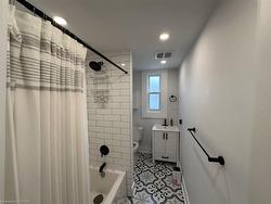 Modern and well-maintained 1-bedroom, 1-bathroom upper unit conveniently located just minutes from the hospital and central Hamilton. This bright apartment features a private exterior entrance with interior access, an accent brick wall, and sleek finishes. Stainless steel appliances are included, with shared laundry available at no additional cost. Pet-friendly building with professional management. Ideal location close to amenities, public transit, and major services.