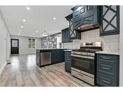 Welcome to 54 Craigmiller Avenue, a fully renovated detached bungalow in a convenient Hamilton neighbourhood—perfect for multi-generational living, first-time homebuyers & investors. This beautifully updated home offers 3+1 bedrooms, 2 bathrooms, and two full kitchens, thoughtfully designed with separate entrances and private decks for both the main floor and lower level. The main level features a bright open-concept living, dining, and kitchen area, showcasing quartz countertops, a tiled backsplash, stainless steel appliances, elegant cabinetry, and neutral paint tones throughout. Three good-sized bedrooms, a stylish 4-piece bathroom, and mud room with private laundry complete the main floor. The fully finished lower level offers a versatile in-law suite with one bedroom plus a large den, a modern 3-piece bathroom, and an open-concept kitchen/living/dining space. Additional flex space and walkout access to the backyard with a private deck make this level both functional and inviting. Outside, enjoy a fully fenced backyard, ideal for relaxation or entertaining, and a concrete driveway with one parking space. Renovated top to bottom, this turnkey property offers comfort, style, and exceptional versatility.