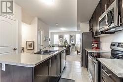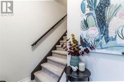 Nestled in the vibrant heart of Waterdown, this modern 3-level townhome offers an urban oasis with exclusive CTOR rooftop terrace. Perfectly positioned for convenience, The Tannery is steps from local dining, shops, parks, and the library, ideal for those desiring upscale amenities with a charming small-town ambiance. Easy access to 407/403/QEW & Aldershot GO Station. The open-concept main floor is designed for seamless entertaining, featuring a spacious layout and an eat-in kitchen equipped w SS appliances & expansive island/breakfast bar. Retreat to the upper floors where two sizable bedrooms await, each with W/I closets. The master boasts a Juliet balcony with sliding doors & ensuite bath. A convenient in-suite laundry & 2nd full bathroom add to the thoughtful layout. The pinnacle of this unique property is the private rooftop terrace. Enjoy serene evenings under a partially covered area. Including 1 parking space. The perfect package for stylish, convenient living. (id:7525)