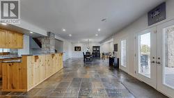 A long private driveway leads through rolling acreage to a rare, commercially zoned estate property offering a unique opportunity to operate a full-scale business onsite while enjoying luxury residential living. Situated on nearly 28 acres, this property is ideal for contractors, trades, logistics, or business owners requiring extensive storage, workspace, and privacy.The property is zoned for a contractor's yard, a designation that is increasingly difficult to secure. It features approximately 25,000 sq.ft. of outdoor storage, a 6,500 sq.ft. heated indoor garage/workshop with radiant floor heating, and substantial second-level office space, allowing for seamless business operations. Ample parking accommodates fleet vehicles, equipment, and staff while maintaining separation from the residence.A 1,200 sq.ft. one-bedroom apartment above the workshop provides ideal accommodations for a site manager, employee housing, or additional income potential.The residential component includes a custom stone bungalow offering executive living for owners or principals. The home features open-concept living, vaulted ceilings, a bright great room with walk-out to a covered lanai, and renovated main-floor bathrooms. The main level includes three bedrooms, while the finished walk-out basement adds two additional bedrooms, a large recreation area, fireplace, bar, and entertaining space.Outdoor amenities include a saltwater pool, hot tub, waterfall, and poolside bar, ideal for executive use or client entertaining. A two-level 6-car garage provides further flexibility for storage, showroom, or gym conversion. The property is equipped with radiant floor heating, central A/C, surround sound, and multiple gas fireplaces.Conveniently located west of Hwy 27 and north of Hwy 9, minutes to Schomberg, this exceptional offering delivers legal commercial zoning, turnkey infrastructure, and lifestyle appeal in one unmatched property. (id:7525)