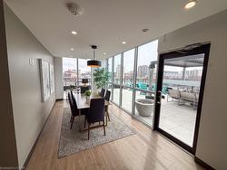 Live in the heart of downtown Kitchener in the centre of it all! Just steps away from City Hall and Victoria Park and LRT station at your front door the Region is yours to explore! This podium Suite is facing South West and your private balcony overlooks the iconic Victoria Park clock tower. Enjoy an open concept layout with plenty of counter space in the kitchen, which features a breakfast bar connecting to the living space. The floor to ceiling windows allow for plenty of natural light and views of the surrounding city. The balcony space is an impressive 123 sq.ft, which gives you plenty of outdoor space to enjoy year round. This building has an absolutely fantastic range of amenities like a concierge, lobby lounge, party room, fitness and yoga room, outdoor terrace, a guest suite, pet wash stations, and garage parking. All utilities and internet included - Tenants only pay HYDRO!