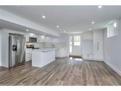 Welcome to Your Stunning Legal Lower-Level Apartment Step into modern comfort and generous space in this beautifully maintained 3-bedroom apartment, designed for both style and functionality. With 8-foot ceilings, it offers a bright and open layout perfect for comfortable living. This inviting home features an elegant electric fireplace, pot lights throughout, and above-grade windows that fill the space with natural light. The modern kitchen is equipped with stainless steel appliances and contemporary finishes, while the bathroom provides a fresh, spa-inspired touch. Convenient in-unit laundry adds everyday ease. Enjoy the privacy of your own separate side entrance, plus shared access to a spacious backyard ideal for relaxing or entertaining outdoors.
