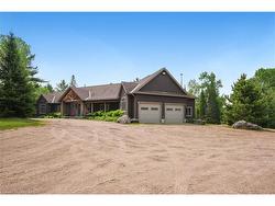 A once-in-a-lifetime waterfront estate — 240+ acres of unspoiled natural beauty with over 6,000 feet of private shoreline,over 5000 ft of idyllic living space, and endless recreational potential. This 5-bedroom, 5-bath custom home blends timeless craftsmanship with thoughtful design, offering open-concept living, two full kitchens, main-floor primary suite, and stunning water views from nearly every room.The grounds are a true sanctuary: miles of private ATV and hiking trails, your own sand beach, two docks, a private boat launch ramp, and located to a neighbouring 80-foot waterfall — all creating an unmatched outdoor lifestyle. The shoreline features a mix of sandy coves and rugged natural rock, ideal for swimming, boating, and exploring. Boaters paradise and you can explore over 42km of waterways and lake and launch from your private boat rampThere is also a licensed 34Ha class A aggregate pit on the property which can be offered with lease in place for passive incomeWhether you’re seeking a family compound, a four-season retreat, business income, or a future development opportunity, this rare offering combines privacy, scale, and natural splendor in a way few properties ever do.
