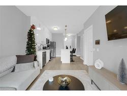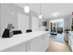Welcome to Unit 216 at Soleil Condos by Mattamy, where modern comfort meets stunning natural surroundings. This bright and spacious suite offers an open-concept layout with unobstructed views of the Niagara Escarpment, filling the home with beautiful natural light. The upgraded kitchen features 9 ft ceilings, sleek cabinetry, Quartz Bianco Calacatta countertops, matching backsplash, pendant lighting over the island, and stainless steel appliances. Engineered hardwood flows throughout, complemented by a stylish 4-piece bathroom with a higher tub, glass tile surround, granite vanity, and convenient dual access from both the bedroom and living area. A separate den provides the ideal space for a home office or nursery, while the in-suite laundry room includes upgraded tile flooring. Additional conveniences include a same-floor locker, EV-ready parking with a 120V outlet, and smart home technology that connects you directly to the concierge and thermostat controls. Located close to Kelso Lake, Rattlesnake Point, Springridge Farm, and the Mattamy National Cycling Centre with facilities for basketball, badminton, volleyball, and pickleball, Unit 216 offers the ideal blend of nature, lifestyle, and modern living.