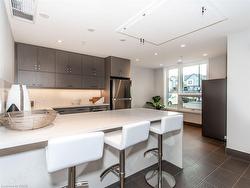 Discover this stunning, upgraded “Harrison” model in the highly sought-after Hawthorne South Village Residences by Mattamy. This bright and open 2-bedroom, 2-bath condo offers modern style, quality finishes, and serene Northwest views of the Escarpment and pond. Featuring 9-ft ceilings, pot lights, laminate flooring, and large windows that flood the space with natural light. The contemporary kitchen shines with stainless steel appliances, quartz countertops and backsplash, under-cabinet lighting, and a convenient breakfast bar. The spacious primary bedroom includes a walk-in closet and a beautifully upgraded 3-pc ensuite with glass walk-in shower. A generous second bedroom with double closet offers excellent versatility. Enjoy your morning coffee or evening unwind on the private balcony, accessed through elegant French doors. Additional perks include in-suite laundry, 1 underground parking space (P1-#20), 1 locker (P1-#291), and high-speed internet included. Conveniently located in close proximity to top-rated schools, shopping, Milton District Hospital and historic Downtown Milton ~ don't miss your chance to get into home ownership or expand your real estate portfolio!