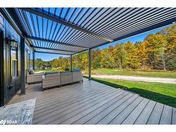 Luxurious park model in the highly desirable Redstone On Rosseau community. This stunning property offers an exquisite living experience with its prime location and a host of desirable features. As you step into the spacious living room, you'll be greeted by a captivating shiplap propane fireplace and convenient walkout that offers a view of the picturesque Lake Rosseau. Walk out from the primary bedroom and living room to a large covered deck with a louvered pergola. The kitchen is a culinary enthusiast's dream, ft. s/s appliances, an island, and elegant shaker-style cabinetry. This beautiful home comprises 2 beds, including a primary that boasts a 3-piece ensuite. The additional 3-piece bath caters to the needs of both residents and guests, ensuring convenience and comfort for all. The property offers 708 feet of waterfront and access to 160 acres of common area. Enjoy access to a range of park amenities, including docking facilities, swimming areas, and scenic trails. Whether you enjoy boating, swimming, or exploring nature, this community has something for everyone. Annual seasonal lease fee phased in to $9,500.