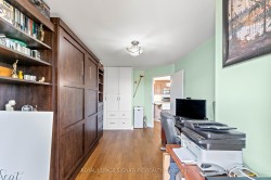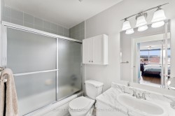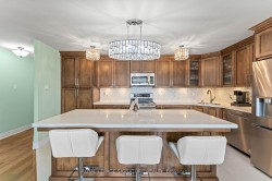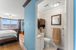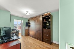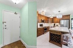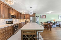 Stunning 2+1 bedroom condominium unit with gorgeous designer kitchen featuring a huge island and custom built-ins. This incredible unit blends modern elegance with every day functionality. Step inside to discover a professionally opened (bulkhead removed!) and completely renovated kitchen, complete with sleek cabinetry, stainless steel appliances, sparkling fixtures and stylish finishes, including a wine rack and shelving dedicated to hosting your best family recipes. A perfect kitchen for both cooking and entertaining! The open concept living/dining area features engineered hardwood floors that add warmth and sophistication throughout the home. Smooth ceilings throughout. Both bedrooms offer comfort and versatility with thoughtfully designed building cabinets, providing ample storage and a touch of custom craftsmanship in each room. The bright and airy sunroom works well as a bonus room, a den or home office. Roomy laundry room with side by side washer and dryer. Whether you are a first time buyer, downsizing, or looking for a stylish Newmarket retreat, this move-in-ready condominium unit offers quality, comfort and convenience in every detail. Excellent location near transit, shopping, schools, places of worship, Southlake hospital and all your day to day needs.