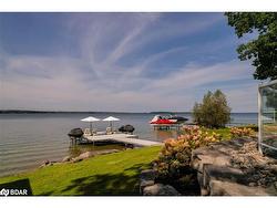 Welcome to 376 Brewery Lane, a stunning luxury waterfront home situated on one of Orillia’s finest streets. This exceptional property offers 104feet of prime Lake Couchiching frontage on a beautifully landscaped half-acre lot with western exposure—perfect for soaking in spectacularsunsets and views of downtown Orillia. Completely renovated from top to bottom, this home offers nearly 5400 square feet of high-end livingspace, featuring 5 bedrooms and 4.5 bathrooms. The gourmet kitchen is a showstopper with two impressive 10-foot islands, granite countertops,and premium appliances from WOLF, SUBZERO, and Thermador. The open-concept main floor boasts large windows that frame lake views, a cozygas fireplace in the living room, and a walkout to an expansive deck—ideal for both relaxation and entertaining. The upper level features 3spacious bedrooms, each with its own ensuite, and a laundry room for added convenience. The primary suite is a true retreat with vaultedceilings, a grand walk-in closet complete with built-ins and an island, and a spa-like ensuite featuring a walk-in shower, soaking tub, heatedfloors, and double vanity. The finished walkout basement offers 9-foot ceilings, a second full kitchen, separate laundry, and a private entrance,making it perfect for extended family or guests. Outside, the property truly shines with a heated saltwater pool surrounded by interlock patios,multiple seating areas, and a large dock complete with sea doo lifts. The private stone path leads to a hard-packed lakefront, perfect for enjoyingsummer days by the water. Double gated entries and a heated interlock driveway provide both privacy and convenience. This rare waterfrontgem is located at the end of a quiet court, offering tranquility and luxury living.
