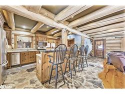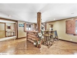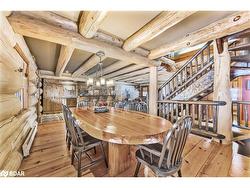 Welcome to 118 Highland Drive, Oro-Medonte. Discover the charm and craftsmanship of this stunning log home in the heart of Horseshoe Valley. Featured in the movie The Christmas Chronicles starring Kurt Russell, this home radiates warmth and comfort, complemented by award-winning landscaping and a breathtaking 3-tier pond a tranquil highlight of the property. Step inside to a spacious foyer with tile flooring which leads into a cozy yet expansive rec room with rich hardwood floors. This level also features a beautiful wet bar, a comfortable bedroom, and a 4-piece bathroom, ideal for entertaining or hosting guests.The open-concept main floor is designed for modern living. The kitchen dazzles with granite countertops, stainless steel appliances, and a breakfast bar, flowing effortlessly into the dining and living room. A walk-in pantry with a built-in freezer and second fridge provides exceptional storage, while a stylish powder room completes this level.The second floor offers two generously sized bedrooms, each with its own ensuite. The primary suite boasts a walkout to a private balcony overlooking the backyard and includes a convenient laundry area. A bright office space and soaring cathedral ceilings with wood beams enhance the airy ambiance of the home.The heated garage, complete with an entertainment room above, blends utility with style. Outdoor living is equally impressive, with multiple walkouts to covered porches, including a wrap-around porch and private balconiesperfect for soaking in the peaceful surroundings. You will love the cleanliness and efficiency of the water radiators and in-floor heating, ensuring consistent warmth and a clean, comfortable atmosphere throughout.Situated just one minute from Vetta Nordic Spa, five minutes from Horseshoe Valley Resort, and close to Craighurst amenities and major highways, this property offers a harmonious blend of natural beauty and unmatched convenience.