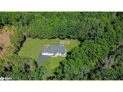 25 ACRE COUNTRY ESTATE WITH PRIVATE TRAILS, SUPERIOR CRAFTSMANSHIP, PREMIUM UPGRADES, & ENDLESS NATURAL BEAUTY! Welcome to an exceptional country estate set on 25 acres with mature forest, gardens, a tranquil pond, and a serene stream, creating a private retreat where year-round beauty and daily wildlife visits await. Offering 1 km of forest trails right on your property, this haven also places you minutes from golf, spas, provincial parks, skiing, snowmobile routes, boat launches, and beaches - with just 20 minutes to Orillia or 30 minutes to Barrie for added convenience. This home boasts over 4,500 sq ft of finished living space, custom-built with superior craftsmanship, energy efficiency, and pride of ownership throughout. Expansive outdoor living includes two porches, a sun-filled entertaining deck, a fire pit, and open-air gathering spaces, while the triple car garage with auto openers and an oversized driveway provides abundant parking and storage space. Inside, a wall of windows in the living room frames pond and garden views, flowing into a dining room and a bright family room with a porch walkout. A cozy den adds main floor versatility, while the gourmet kitchen impresses with a pantry, a built-in oven and countertop range, and a walkout to a sunny deck. A full 4-piece bath complements three bedrooms, including a luxurious primary suite with a walk-in closet and a 3-piece ensuite. The finished basement offers a bedroom, a den with a patio walkout, a large rec room with a wood stove, a workshop, home gym, and full bath, creating excellent in-law suite potential. An included hot tub and pool table add everyday leisure, while upgrades such as an owned water heater, water purification system, durable lifetime shingles, and enhanced attic insulation ensure lasting peace of mind. This is more than a #HomeToStay - it’s a rare retreat surrounded by natural beauty, offering unparalleled space, lifestyle and elegance ready to be treasured for years to come.
